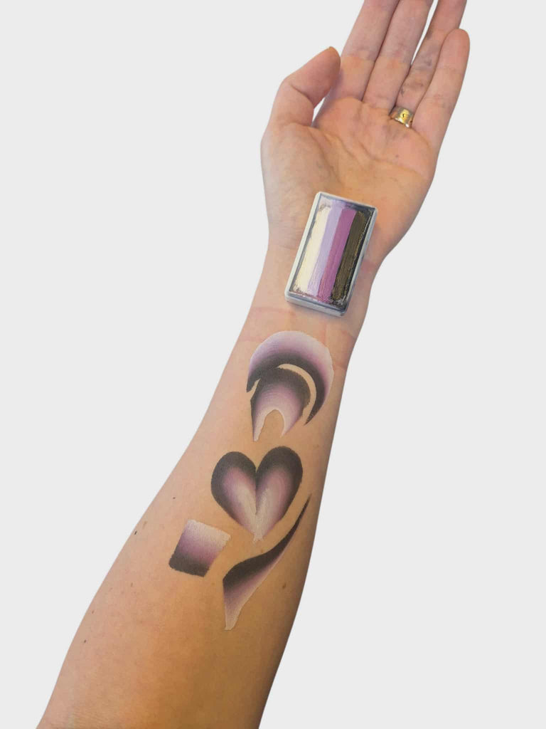 Från DFX. En Splitcake som gör det fantastiskt enkelt att måla fina motiv med flera färger samtidigt! Ett drag med penseln och tadaa! Platta penslar nr 16 eller 18 (3/4 inch) fungerar bäst för att få med alla färgerna.